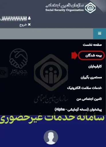 در تصویر زیر، گزینه «بیمه‌شدگان» با کادر یا علامت مشخص شده است.