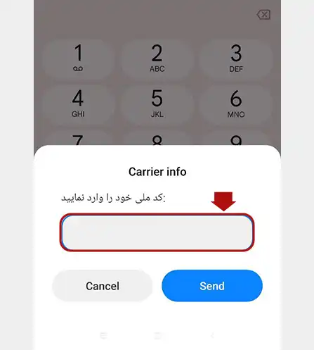 ابتدا وارد بخش شماره‌گیری تلفن همراه خود شوید و کد زیر را دقیقاً وارد کنید: