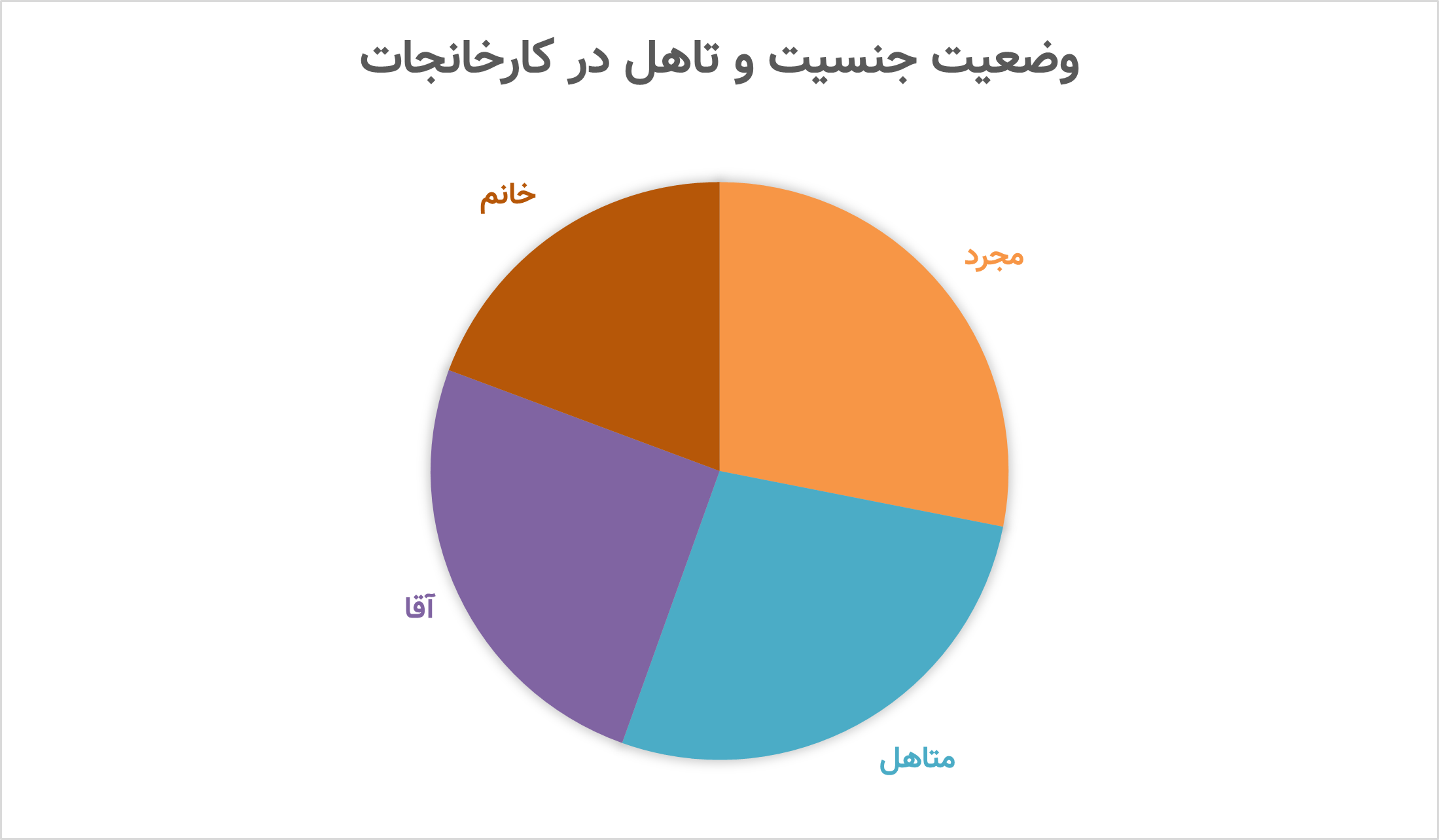 این آمار هم مشابه مورد جنسیت، نشاندهنده آن است که در آگهیها بیش از یک وضعیت تأهل ذکر شده و بهطور کلی کارخانجات محدودیتی جدی در این بخش اعمال نمیکنند.